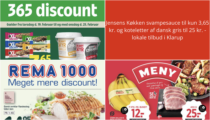 Vi har kigget på denne uges tilbudsaviser for dagligvarebutikker i Klarup og fundet nogle spændende tilbud. Her er et udpluk af de bedste tilbud fra Coop365, Meny og Rema 1000.