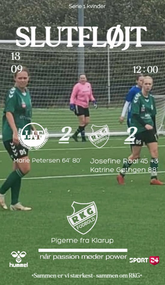 RKG Kvinder serie 1 formåede at sikre sig et point i en intens kamp mod Løgstør IF, der endte 2-2, lørdag den 13. september 2025.